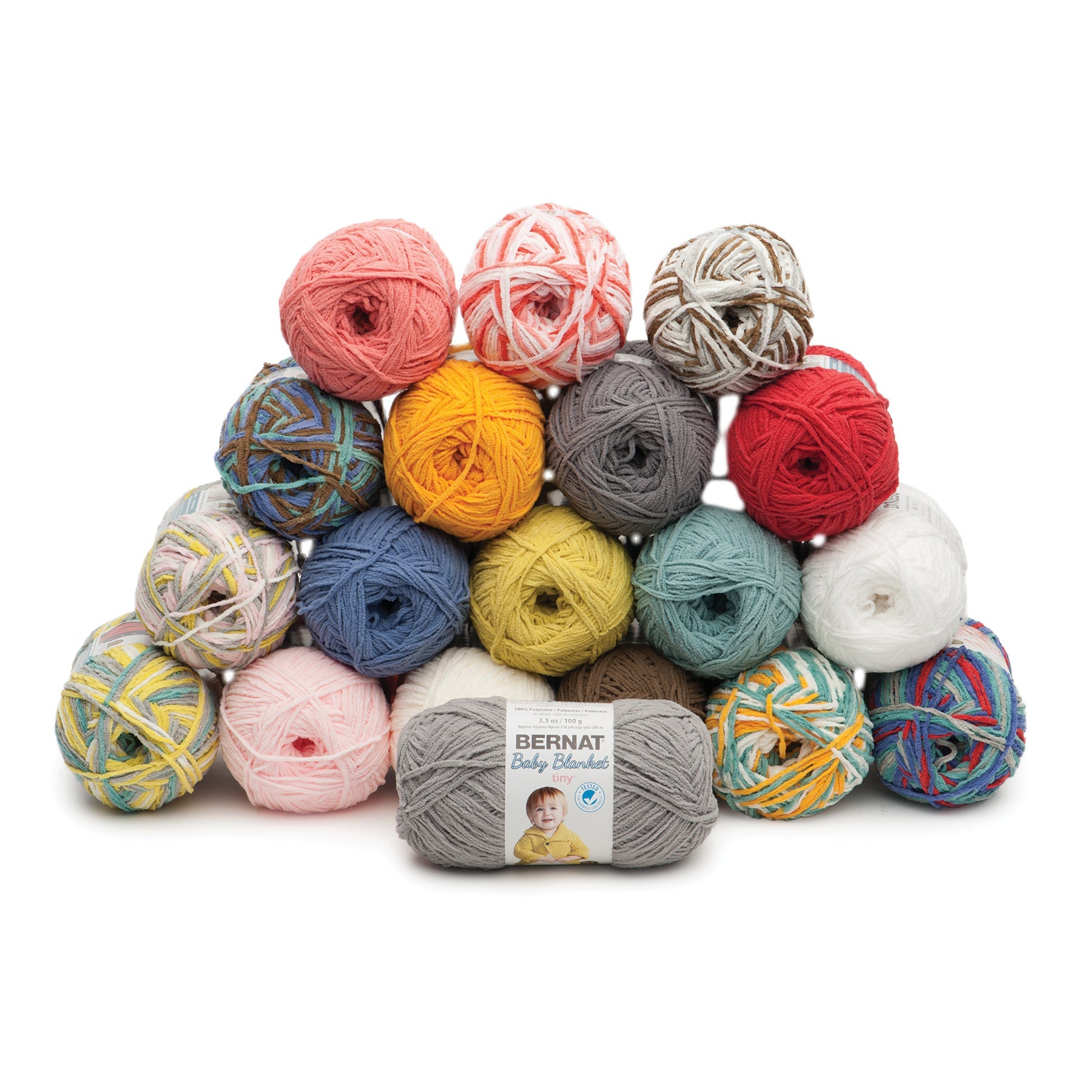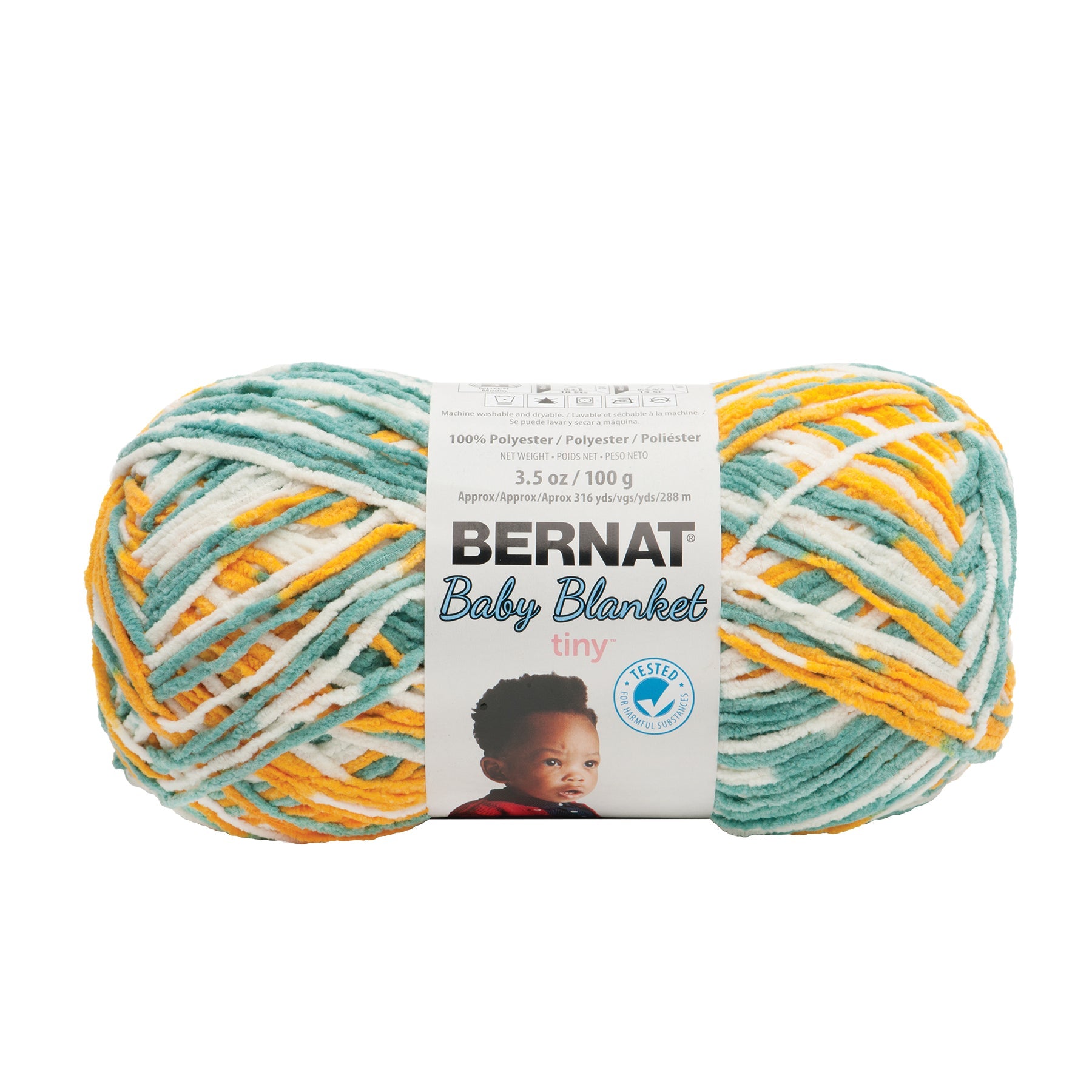 Bernat® Baby Blanket Tiny™ is the same Baby Blanket™ you know and love, now in a garment weight for stitching ultra soft, plush baby sweaters, booties, hats and lighter weight blankets! Featuring 16 bright and cheerful shades, Tiny is conveniently machine washable and dryable for easy care.