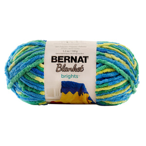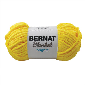 Bernat Blanket Brights 150 g is a soft and cozy chenille-style yarn, in an energetic range of bright shades. Great for a variety of projects, from plush blankets, to crochet baskets, and home decor accessories. It’s super bulky weight stitches up quickly, making it a great choice for large projects. Available in a wide range of solid and variegate shades to compliment your home décor. Machine washable and dryable for easy care.