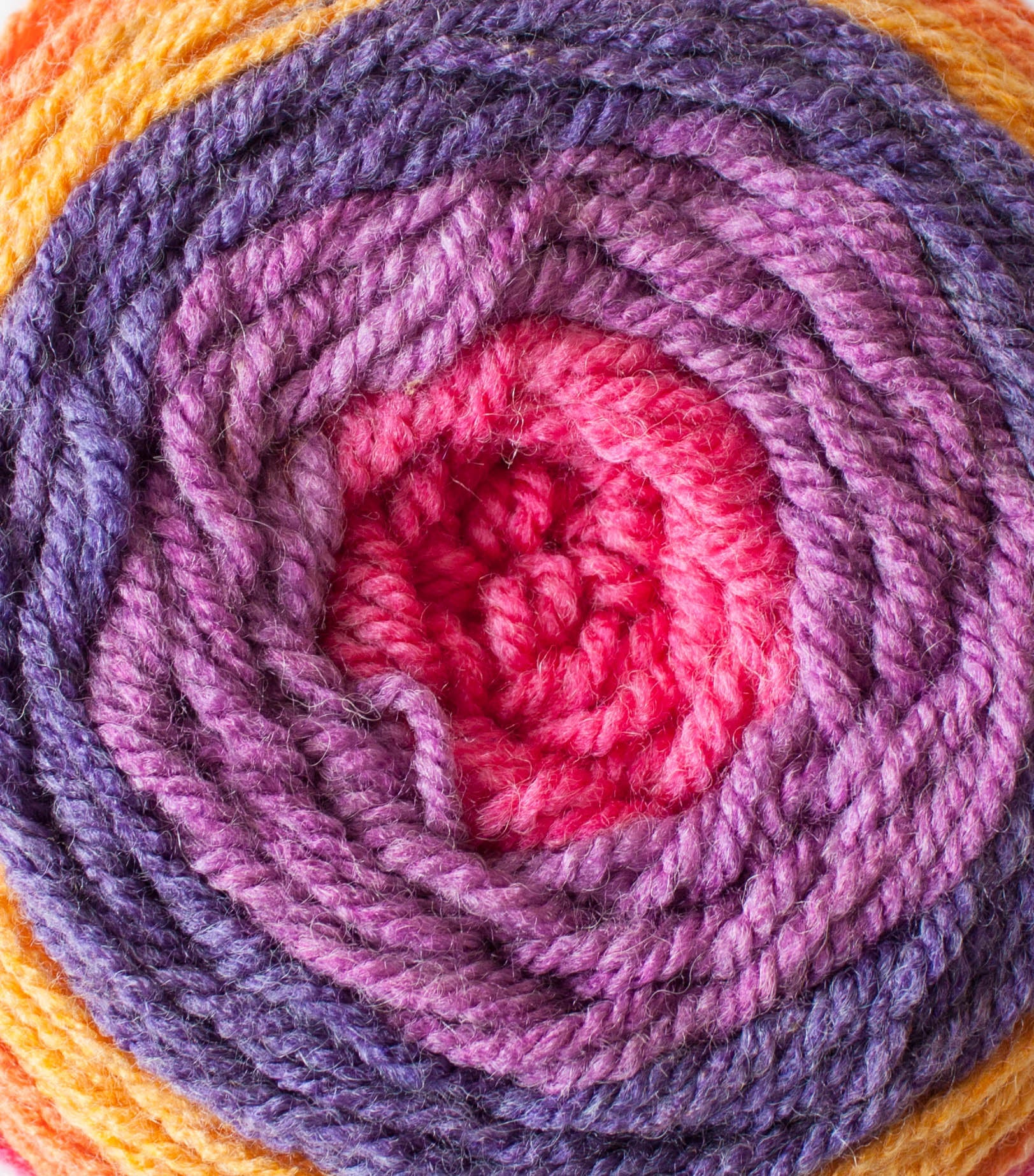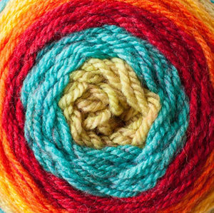 This multipurpose yarn can be used for knitting, crocheting and a variety of crafts—it's ideal for any project! Its versatile worsted weight is great for garments, accessories and home décor projects. Available in a range of vibrant, variegated shades, each ball features five bright colours.