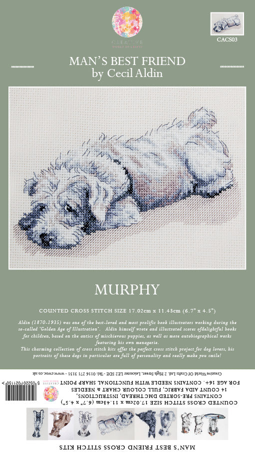 Cecil Aldin Man's Best Friend Cross Stitch Kit - Murphy