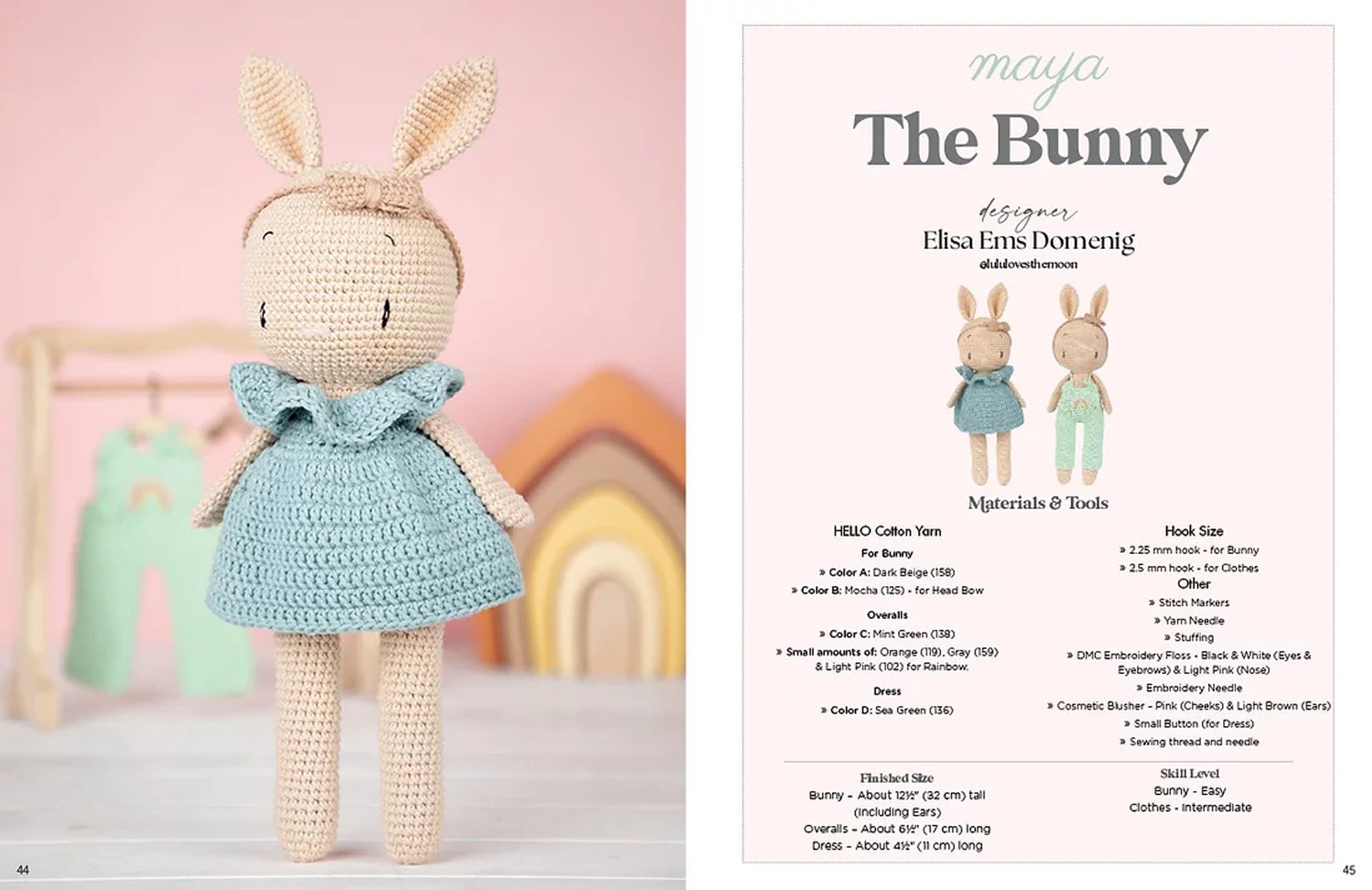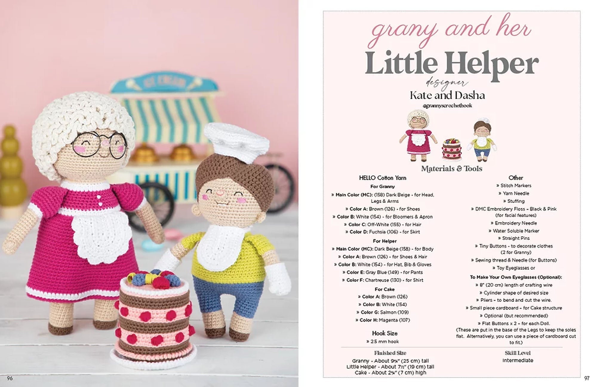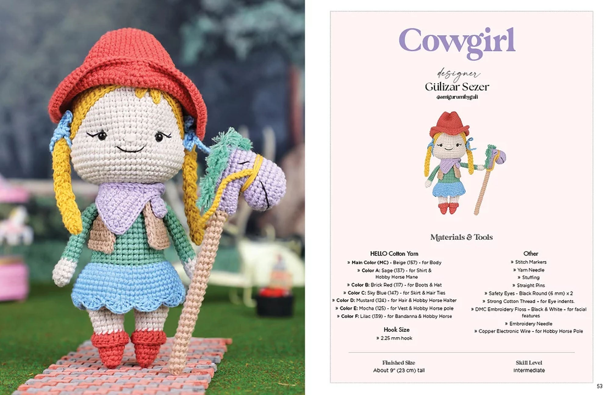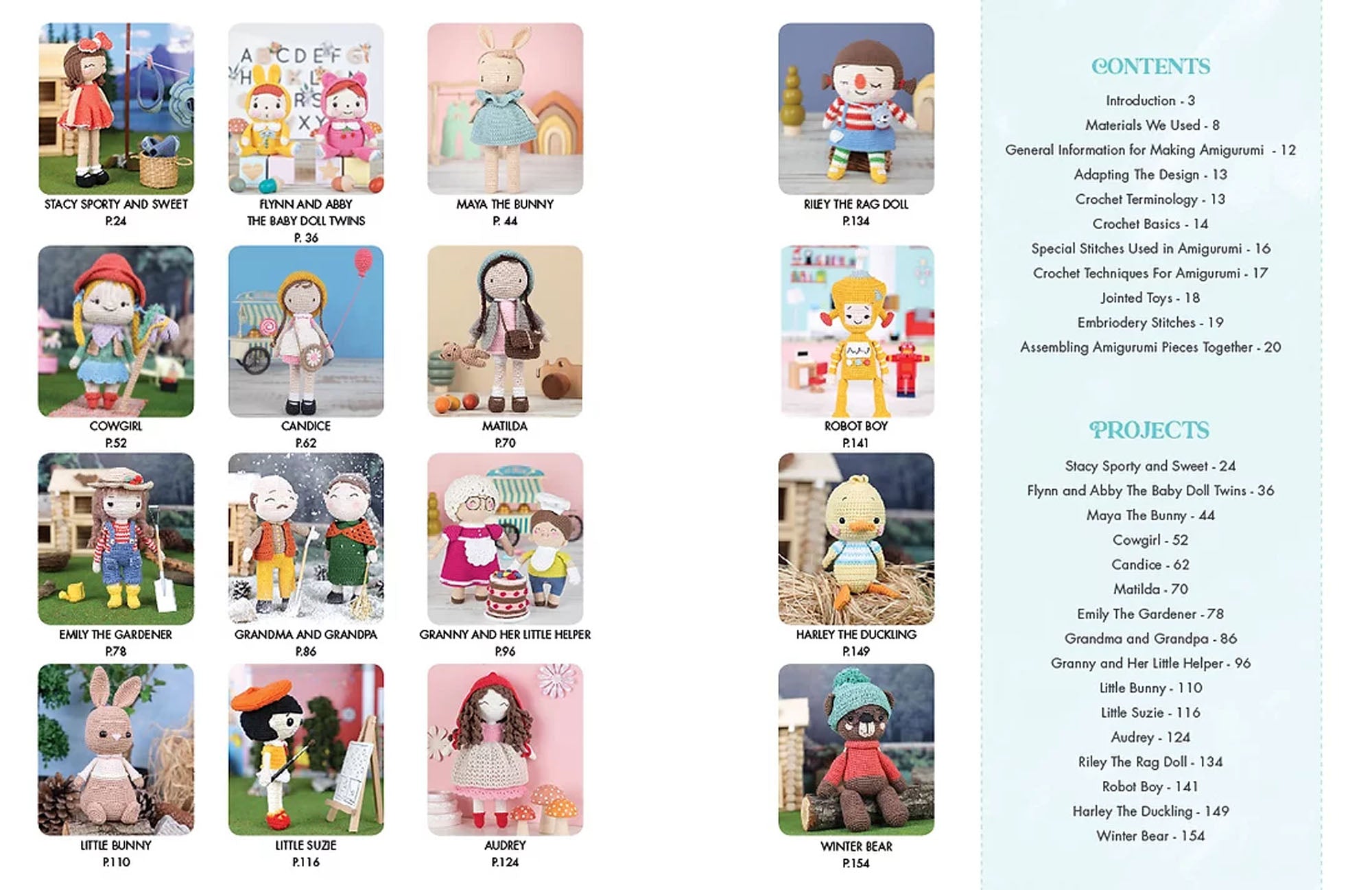 There are nineteen beautiful amigurumi designs to choose from, including Cowgirl (with her Hobby Horse), Granny and her Little Helper, Harley the Duckling, Riley the Ragdoll, Robot Boy, Winter Bear, and many more delightful dolls and toys to stimulate the imagination.
