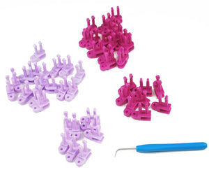 Loom knitting links that can make any size flexible knitting loom up to 92 pegs. Kit includes 48 links. Size 3/8" - small gauge for worsted weight yarn.