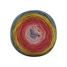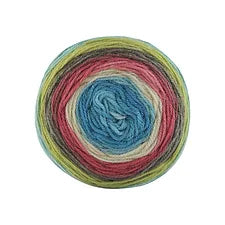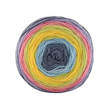 Long self-striping colors are now available with wool blend. Papatya Cake Wool offers wide range of charming colorways, from jewel tones, to bright children's colors, and even classic shades for men. The ideal DK weight for crocheters, Papatya Cake Wool will allow you to model a scarf, triangular shawl, eyelet stitch waistcoats, and fun panhos!