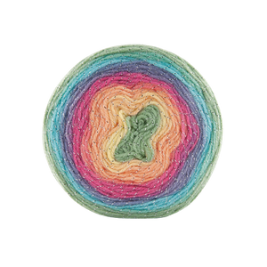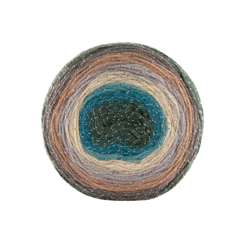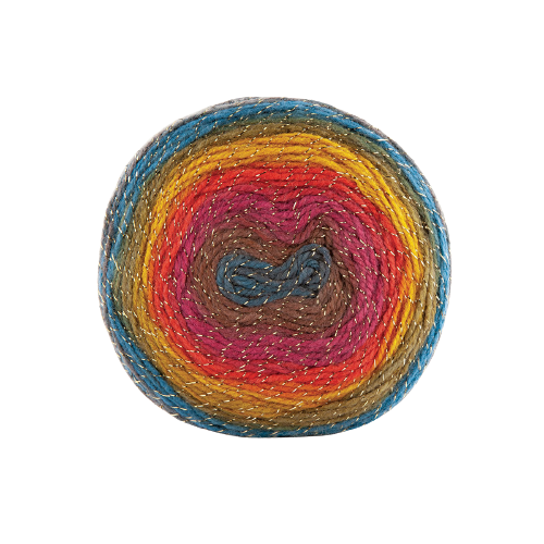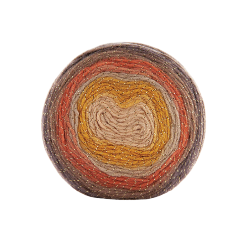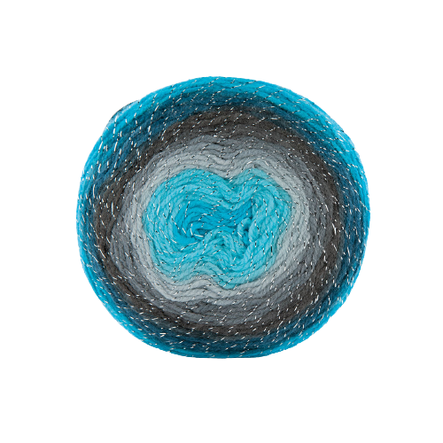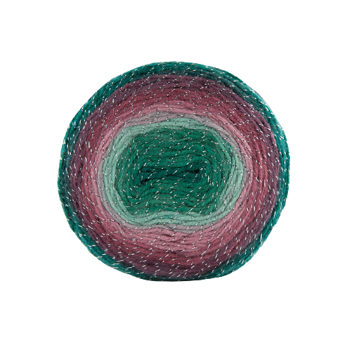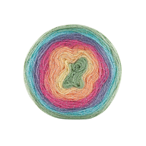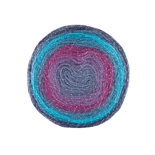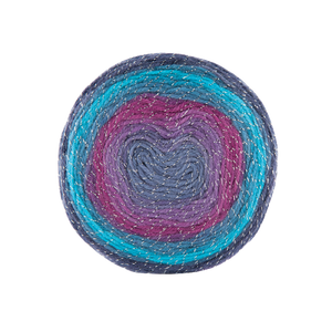 With long self-striping colors with glitter, Papatya Cake Silver offers wide range of charming colorways, from jewel tones, to bright children's colors, and even classic shades for men. The ideal DK weight for crocheters, Papatya Cake will allow you to model a scarf, triangular shawl, eyelet stitch waistcoats, and fun panhos!