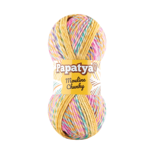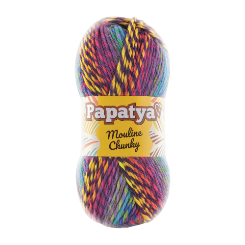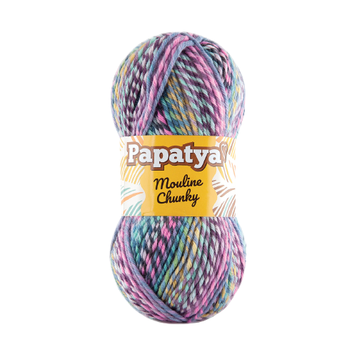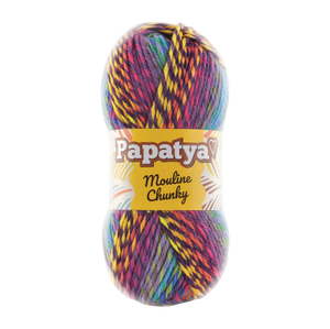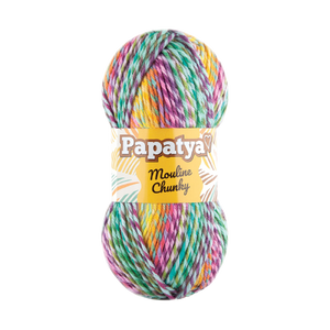Imagine you thought you couldn’t fall more in love with the colors of Batik, Papatya developed such irresistable yarn. By cleverly twisting two ends of Batik, Mouline Chunky has twice the number of colors, with a tweedy self-striping effect. With soft color changing on stripes will lead fancy color effects by your creation. This gorgeous yarn is the same soft fiber as Batik at a heavier yarn weight. 100gr / 160mt is enough for hat/scarf and quick blanket projects.